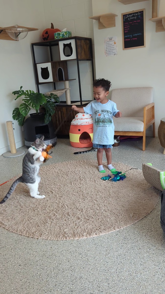 Upon entering, you're welcomed by two spacious rooms bursting with colorful cat toys, cozy spots for the cats to lounge, and a self-service coffee bar that caters to every taste. Imagine the aroma of freshly brewed coffee wafting through the air as you settle down with your cup, surrounded by the soothing presence of lovely cats. Many patrons, like Elo, have raved about the friendly staff who are always ready to answer any questions about the cats. They create an inviting atmosphere that complements the charming personalities of these adorable creatures.